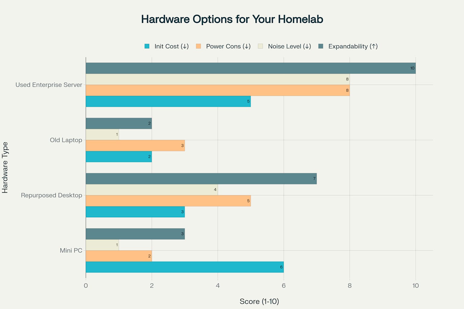 When selecting hardware for your homelab server, consider these factors based on your specific needs and constraints. Each option has distinct advantages and trade-offs as shown in the comparison above.